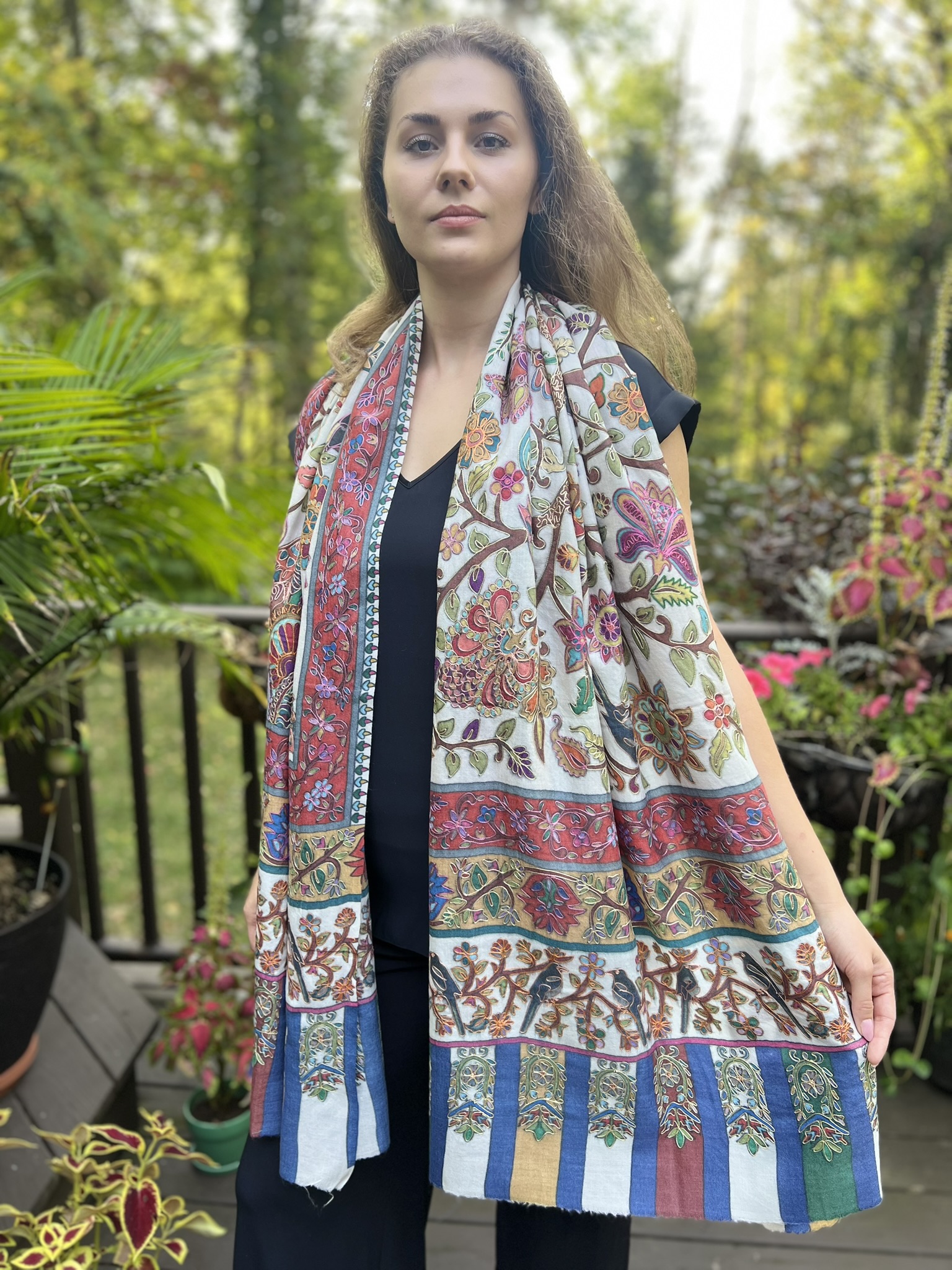 Our collection celebrates the rich Kashmir shawl heritage through the intricate beauty of Kalamkari. Every piece is a unique narrative design, often featuring motifs from Indian epics, divine deities, graceful peacocks, and the iconic Tree of Life . The result is a stunning statement piece that adds a touch of boho, artistic elegance to any wardrobe, perfect for those who value handmade, ethical fashion.